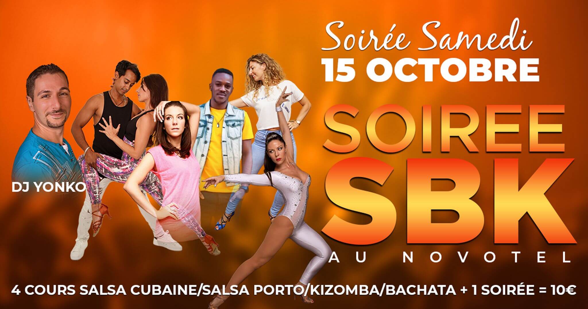 Samedi 15 octobre : Soirée Salsa, Bachata, Kizomba au Novotel ! Pour la reprise des soirées SBK, on vous propose 4 cours avant la soirée